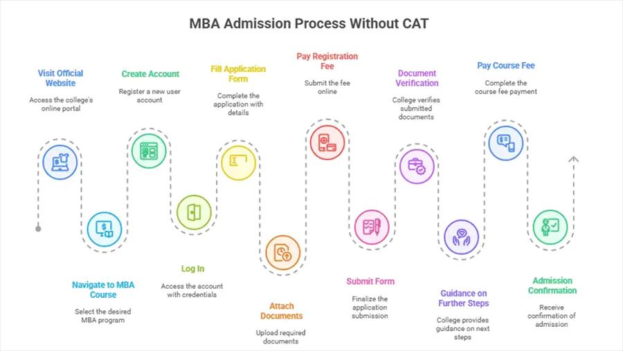 Both online and distance MBA courses follow a similar admission process. A private college MBA without CAT admission process is also quite similar. It may only differ in the fee payment mode. Here is the general admission process for the MBA without CAT exams. Take a look: